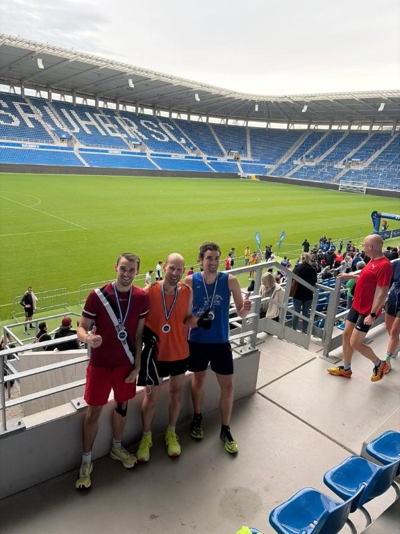Unsere Jahresschnellsten Marc Brenckle, Philipp und Johannes Ullrich fanden sich beim Schloßparklauf in Karlsruhe zu einer Staffel zusammen. Die drei Runden über insgesamt 9,7 Kilometer spulten sie trotz zeitraubender Überholvorgänge erfolgreich in 32:56 Minuten ab und liefen mit deutlichem Vorsprung als Sieger von 76 Teams im KSC-Stadion über die Ziellinie. 905 Läufer bestritten die Gesamtdistanz von 9,7km, darunter auch Thomas Kessler (49:19 Minuten).