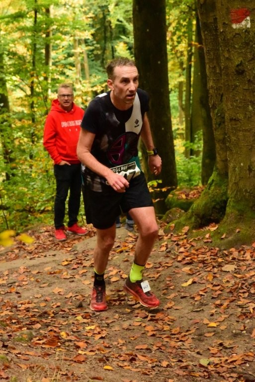 Auf der flachen Waldlaufstrecke in Rülzheim bewiesen Marc Brenckle und Andre Zschaubitz im Wettbewerb über 10km was sie läuferisch so drauf haben. Marc, er lief bereits die Woche zuvor im elsässischen Schweighouse als Gesamtfünfter die 10km in 35:21 Minuten, stürmte hier in Rülzheim als Gesamtdritter in 35:31 Minuten über die Ziellinie. In Sichtweite dahinter schon Andre Zschaubitz als Fünfter in guten 36:00 Minuten. Elisabeth Frieß (53:44) stand innerhalb von acht Tagen zum dritten Male als Siegerin der Klasse W60 auf dem Podest (Thomas Kessler 52:21).