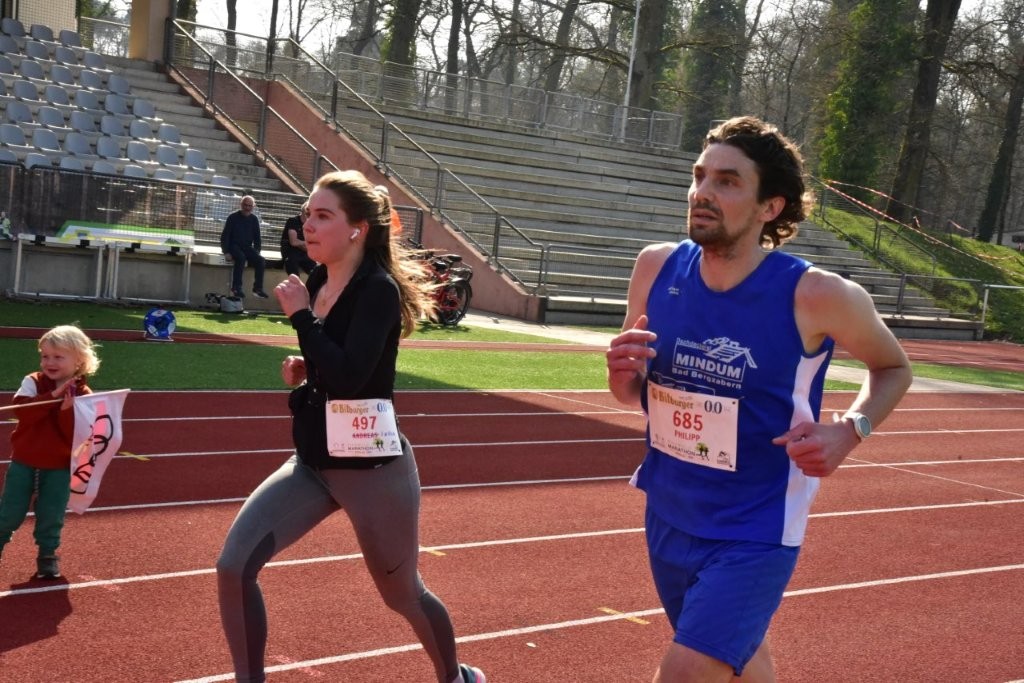 Einen guten Einstieg in die neue Saison feierte Philipp Ullrich, denn auf der 15km-langen meist über Feldwege führenden Laufstrecke erkämpfte er sich nach 2020 mit 53:01 Minuten eine neue persönliche Bestleistung über diese Distanz. Auffallend besonders die deutliche Leistungssteigerung von Raphaela Tengler (1:17:19 Stunden), die im Vergleich zum Vorjahr auf gleicher Strecke das Ziel volle fünf Minuten schneller erreichte. Jan Schmitt (55:07 Minuten) blieb mit einem Kilometerschnitt von 3:40 Minuten noch unter der Vierminutengrenze. Christin Krumnauer (1:20:27 Stunden) unterbot bei ihrer Premiere über diese Distanz deutlich die Sechsminutenmarke für den Kilometer. Und im Lauftempo von 4:58 Minuten für den Kilometer lief Bettina Speeter nach 1:14:21 Stunden im Rheinzaberner Stadion über die Ziellinie.