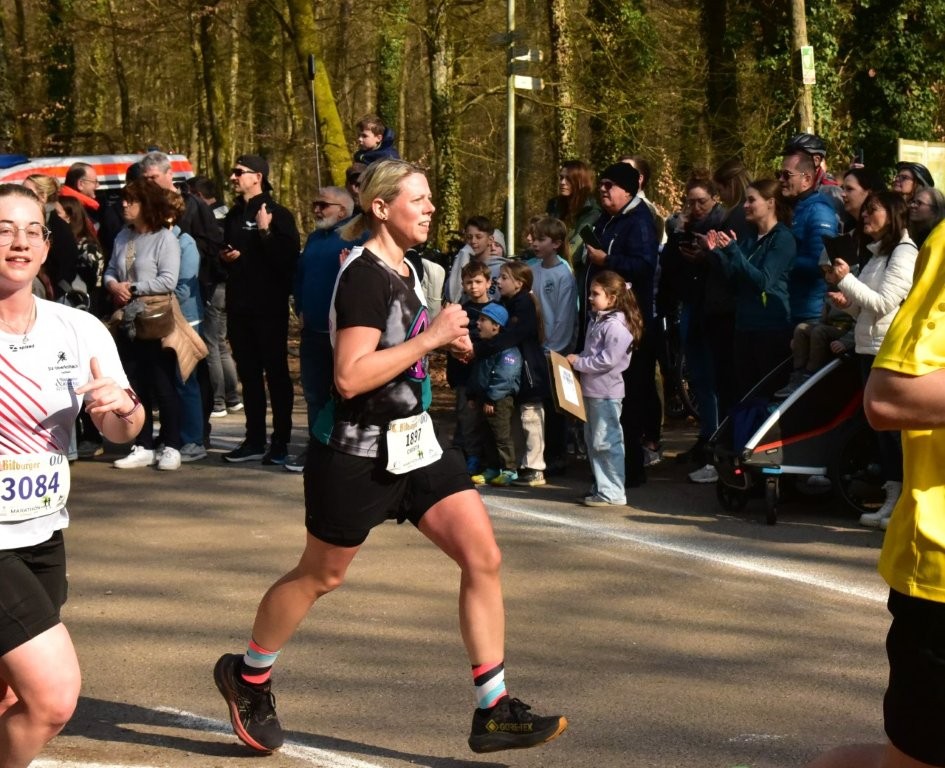 In bestechender Tagesform präsentierten sich im Halbmarathon Markus Ertel und Mario Graf. Mit einem Kilometerschnitt von 3:40 Minuten steigerte Markus Ertel mit dem Ergebnis von 1:17:19 Stunden seine Bestleistung um mehr als zwei Minuten. Sogar vier Minuten schneller wie bisher absolvierte Mario Graf die 21,1km, denn bereits nach 1:26:34 Stunden lief er im Bienwald Stadion über die Ziellinie. Auch Guiliana Haas lief ein beherztes Rennen und kann stolz auf ihr gutes Ergebnis von 1:32:07 Stunden sein. Unter zwei Stunden wollte Christin Krumnauer ihr ersten Halbmarathon laufen, was ihr mit der Endzeit von 1:56:17 Stunden nach einem gut eingeteilten Rennen bestens gelang.